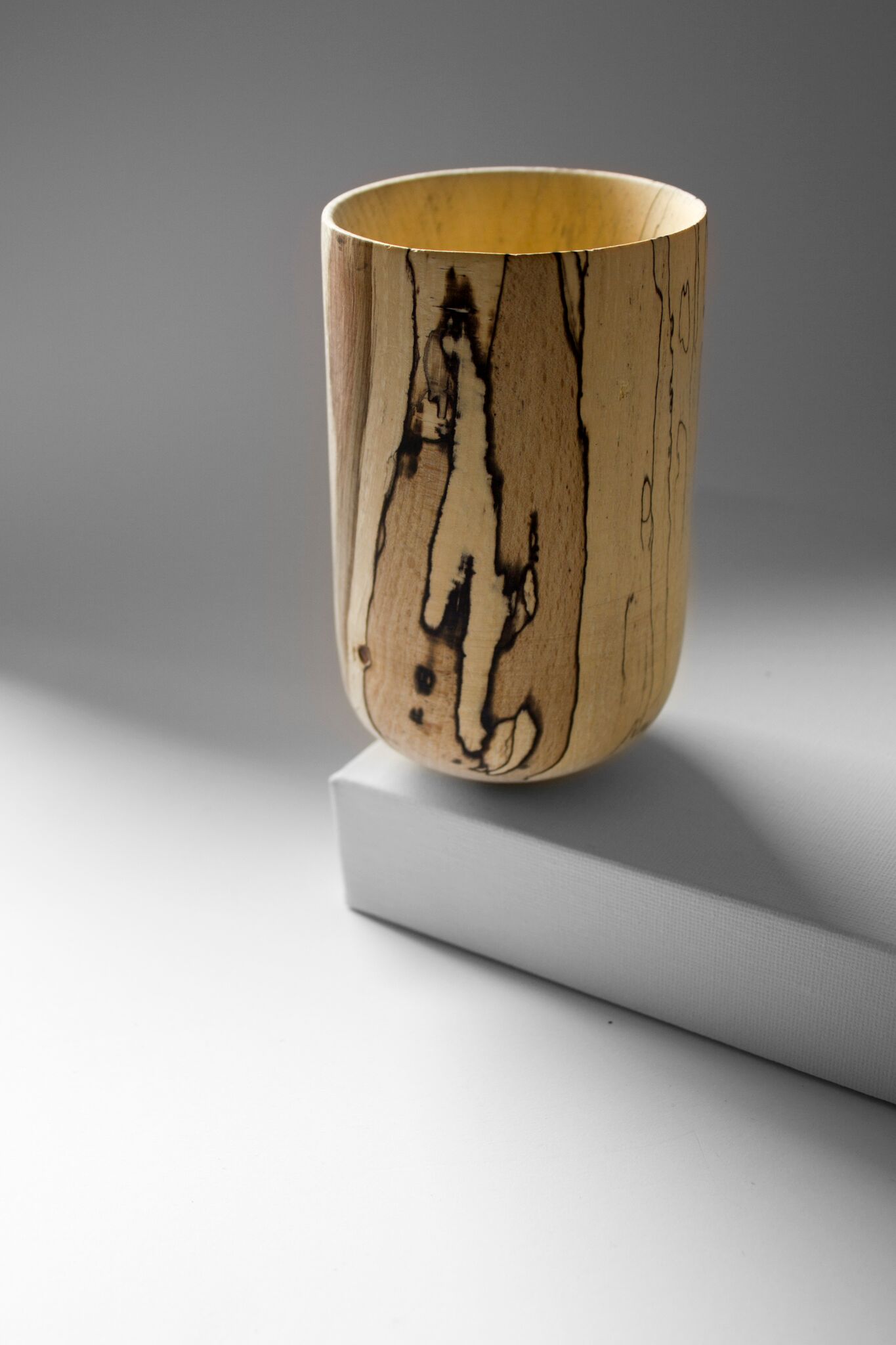 Peter’s bowls, pots and other items manipulate the properties of scrap and manufactured wood, to create a sense of rings, knots and trunks that returns some of its natural form. He invites us to refocus our view, to understand anew our relationship with trees and the significance of their importance and struggle on earth.