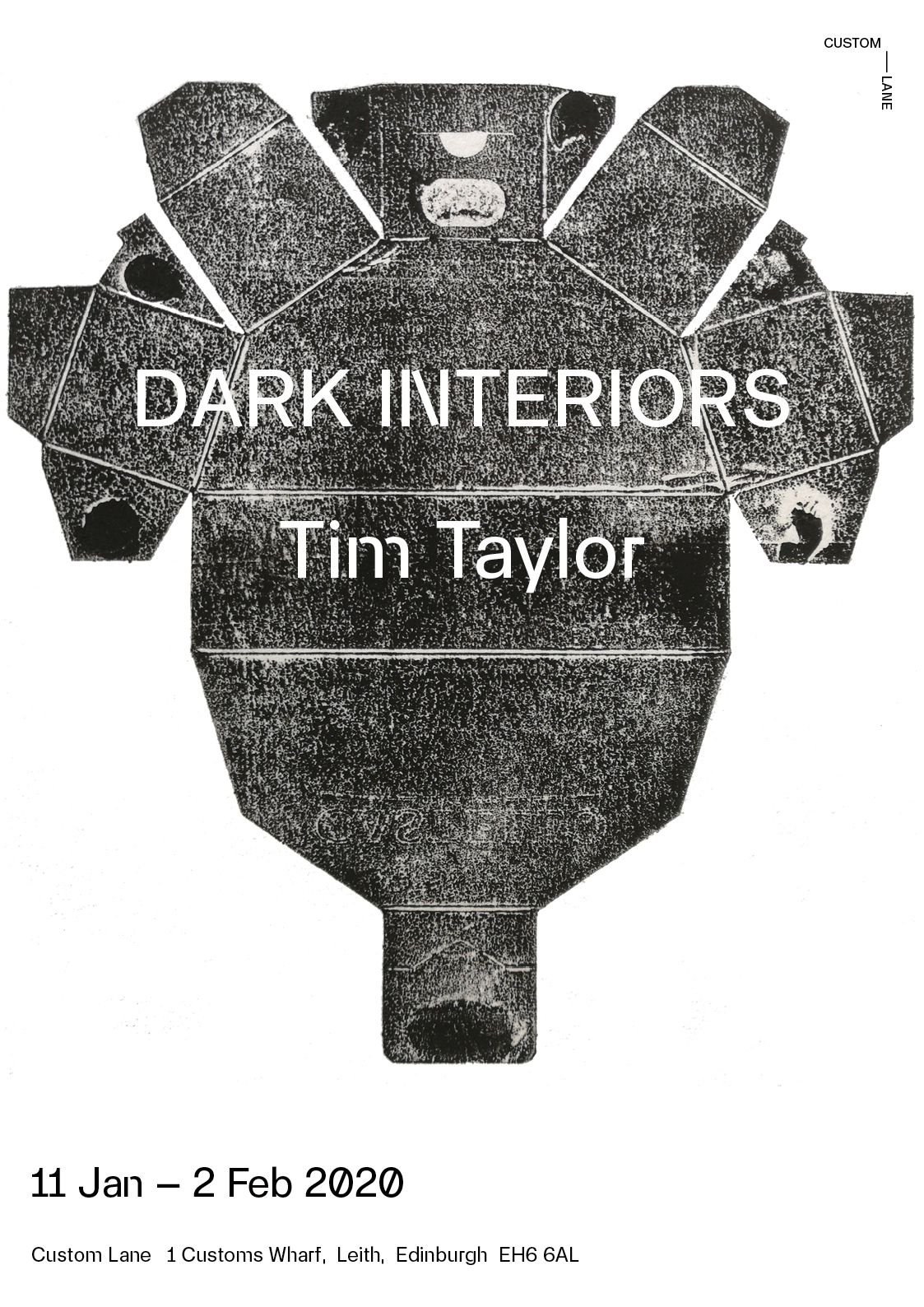 Continuing Taylor’s ongoing exploration of the beauty, pathos and humour inherent in the everyday object, incident and environment, Dark Interiors records the packaging that passes through domestic life, flattened for recycling. The deconstructed forms of these containers have been transferred to paper using traditional hand-printing techniques.